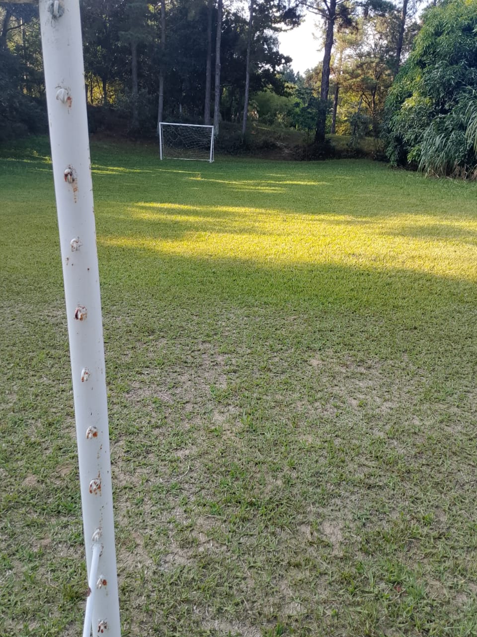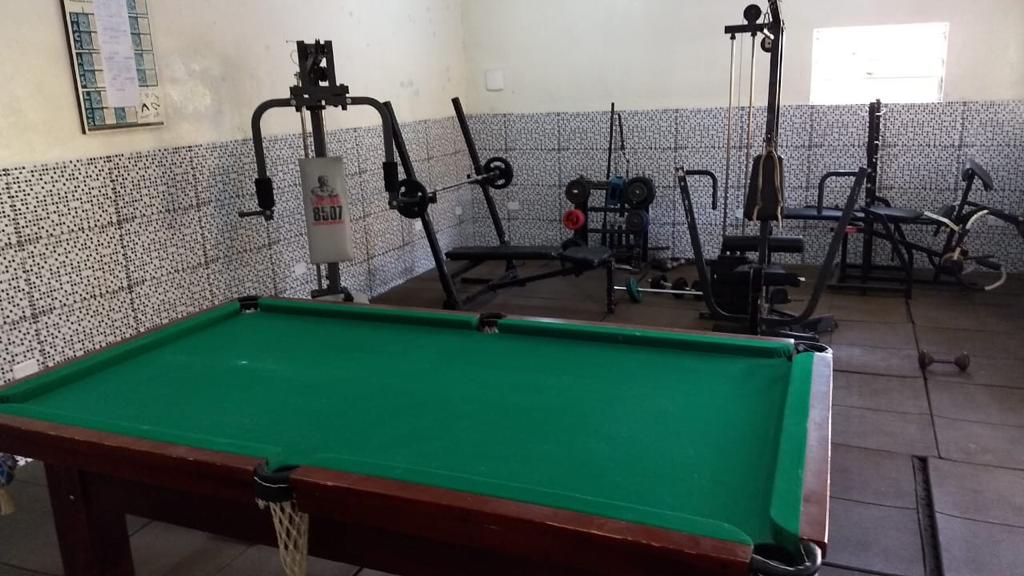 Segurança com monitoramento 24h, cerca elétrica e alarme, além de piscina, campo de futebol e academia completa.